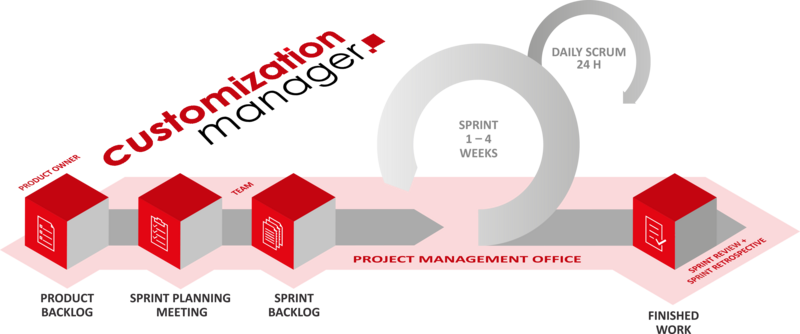 Unser agiles Projektmanagement ist bestens auf den agilen Entwicklungsprozess abgestimmt und ummantelt diesen. Um für diese Ummantelung je nach Projekt ein passendes Tailoring zu evaluieren, haben wir speziell unseren Customization Manager entwickelt.